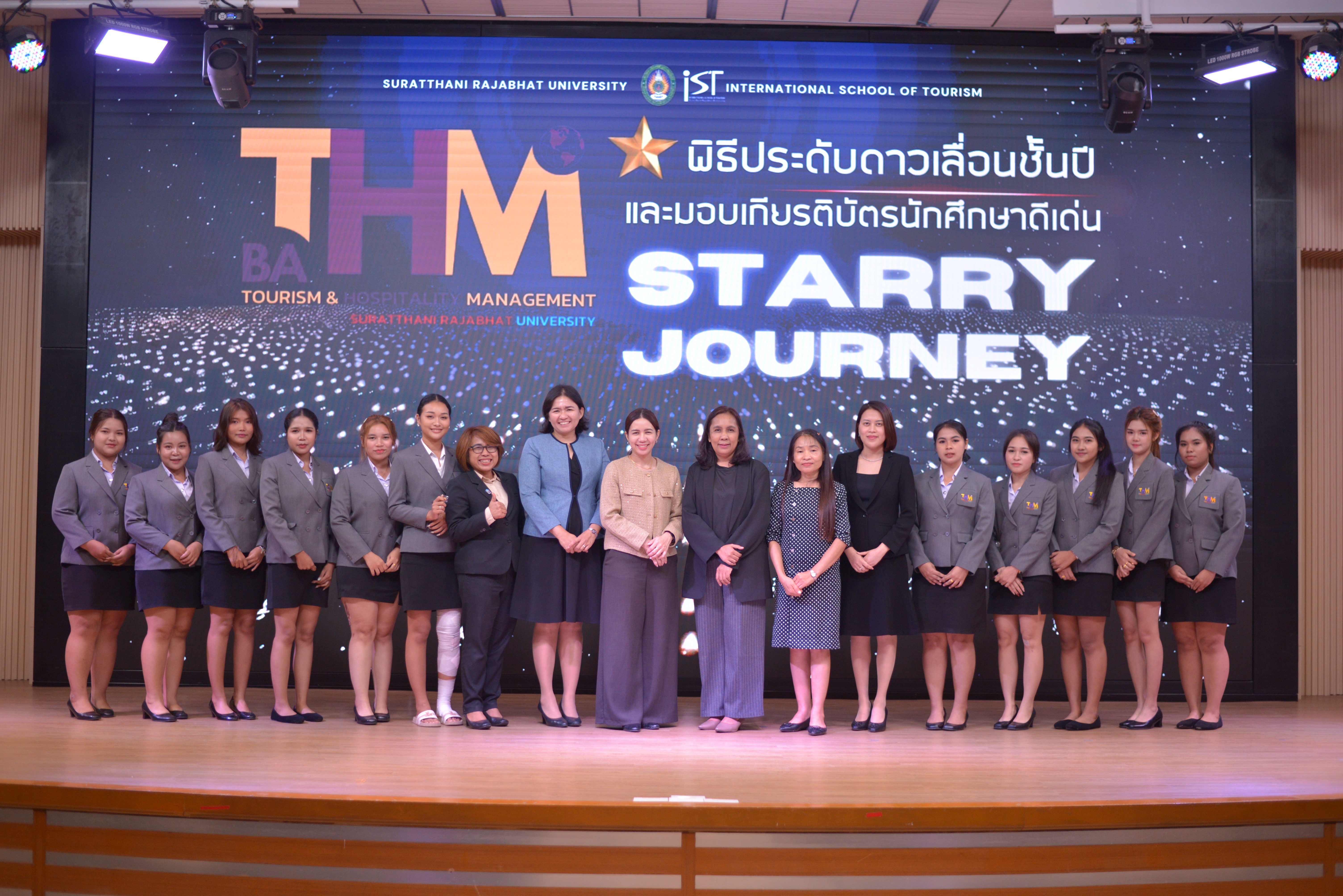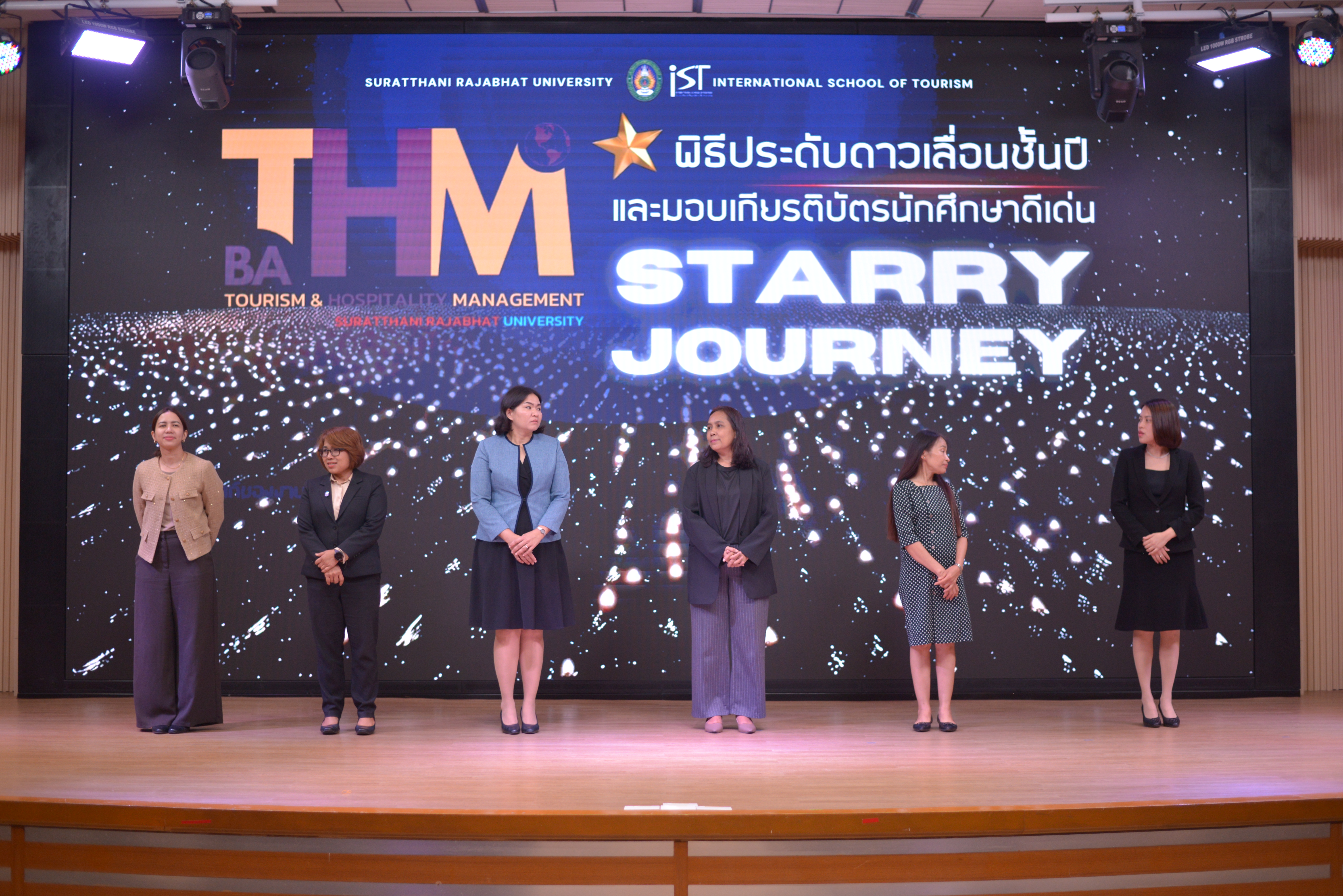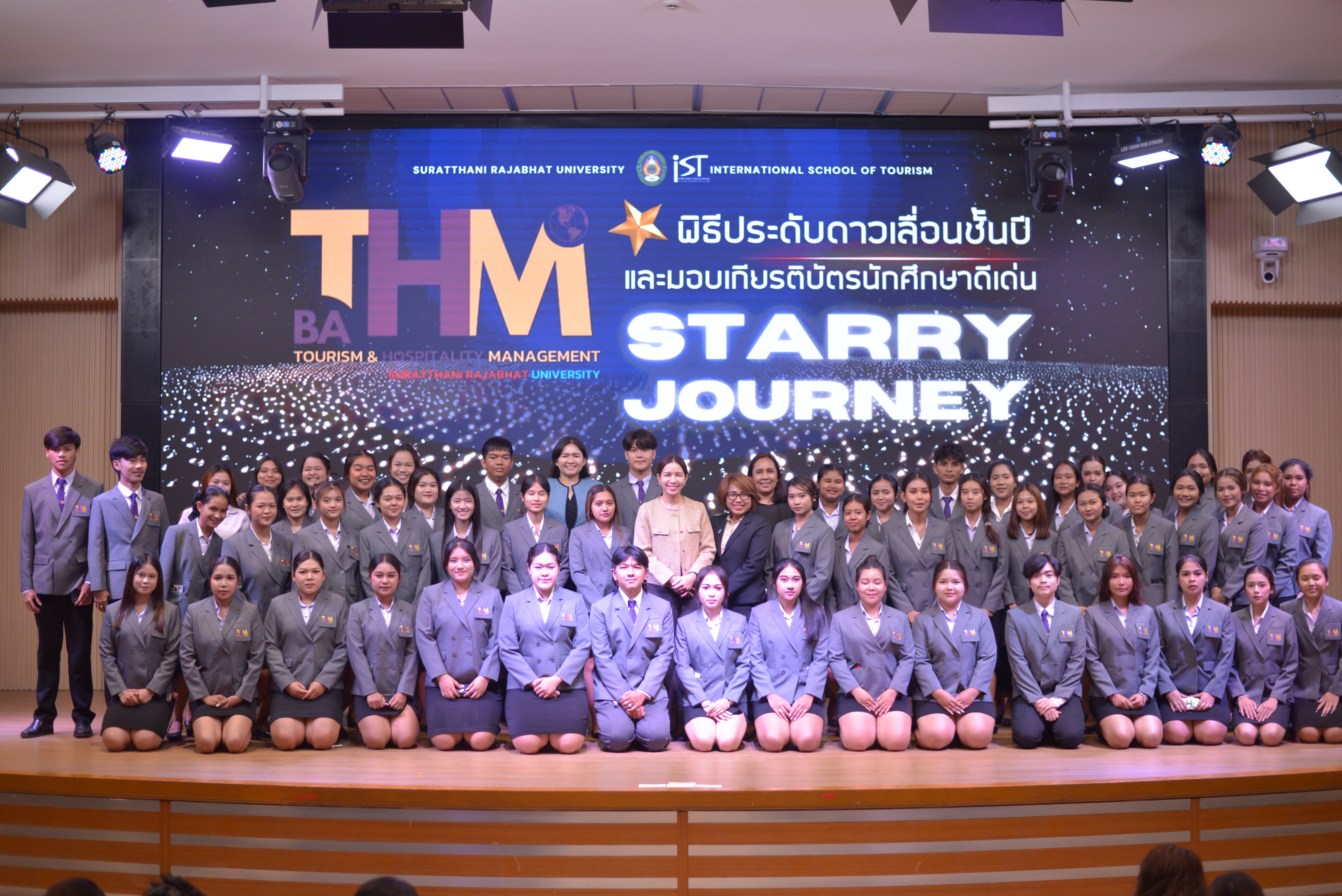 The International School of Tourism, Suratthani Rajabhat University, organized the “THM Starry JOURNEY” ceremony to celebrate the success and achievements of Tourism and Hospitality Management students as they move forward with pride and potential in their academic journey.