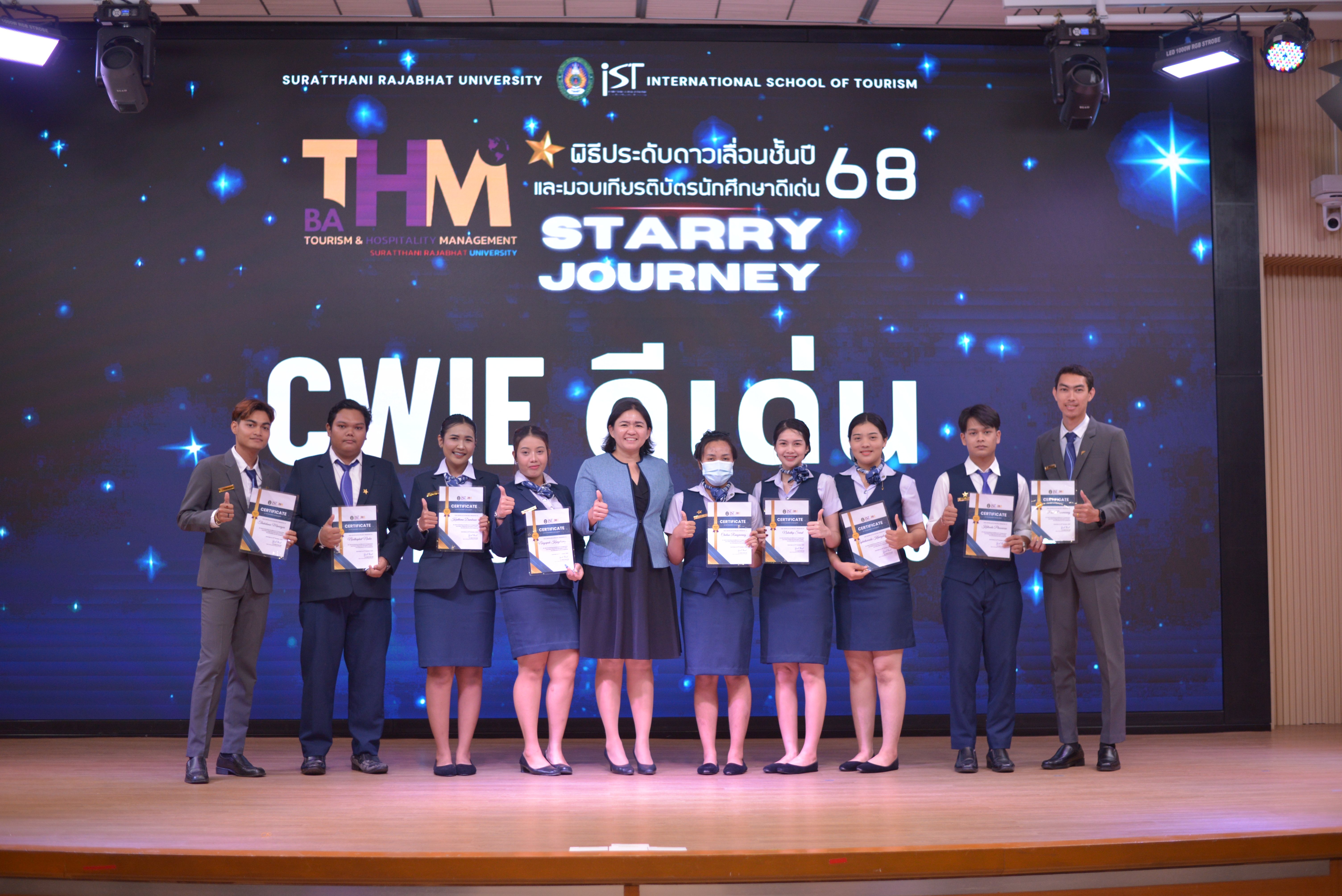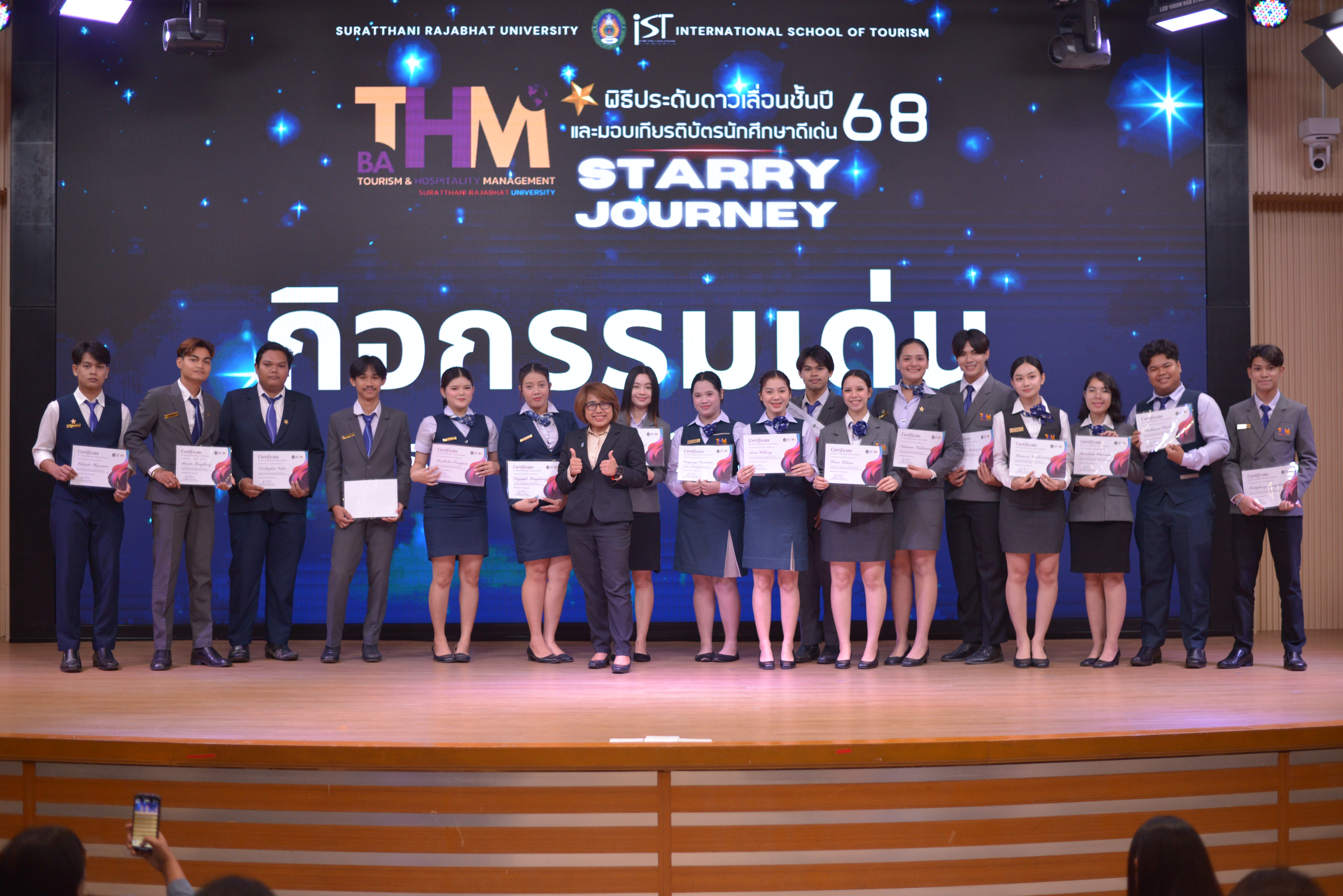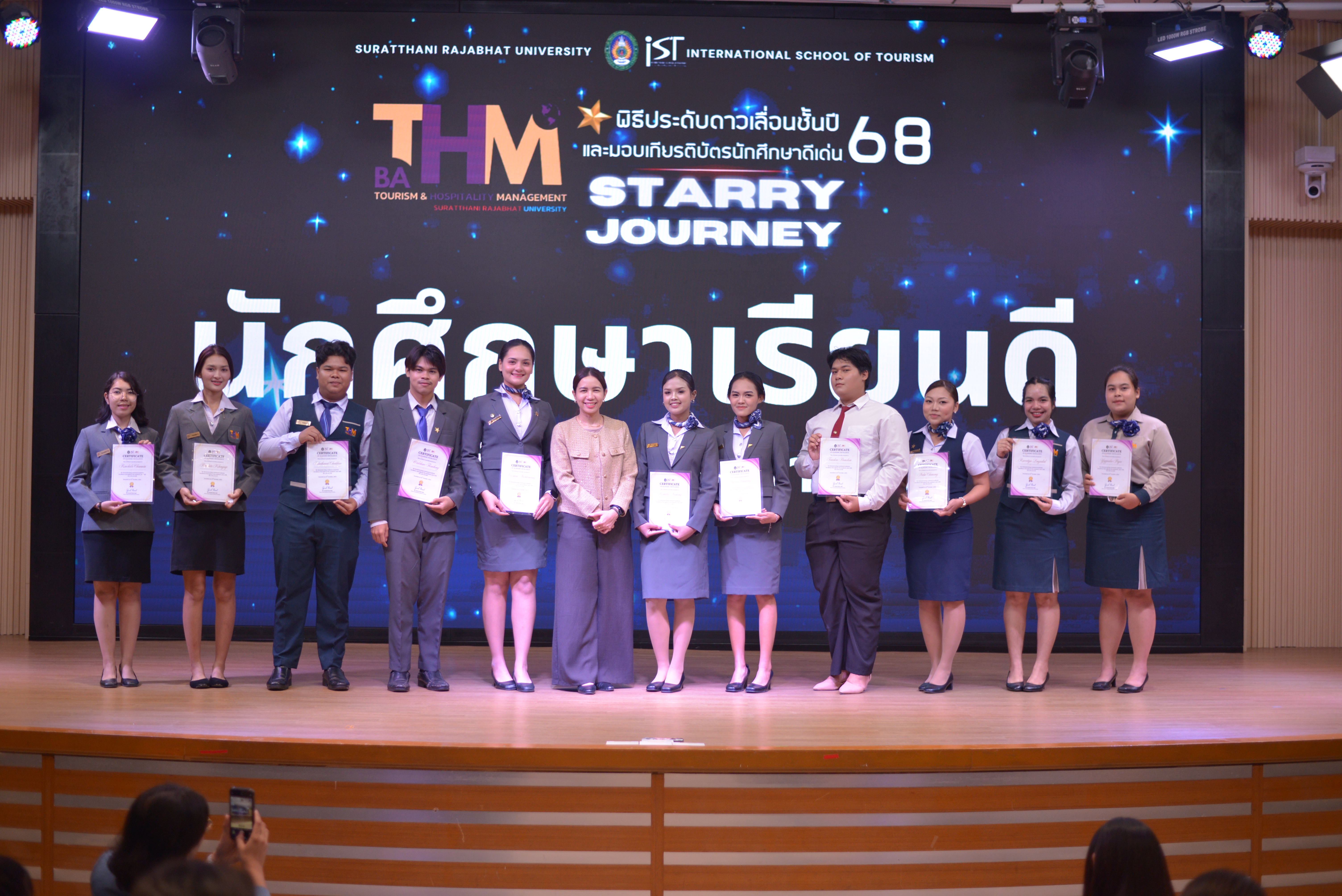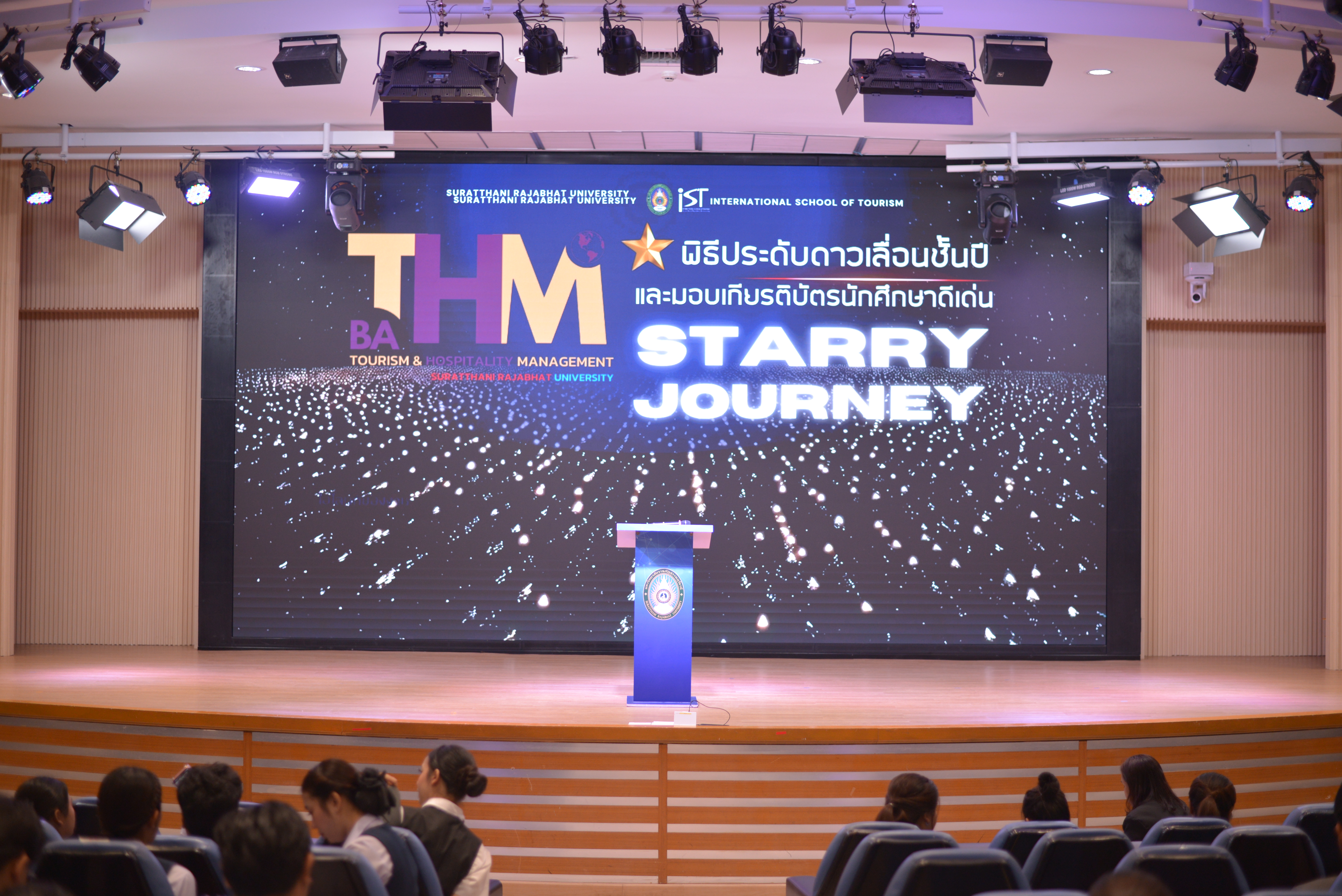 The International School of Tourism, Suratthani Rajabhat University, organized the “THM Starry JOURNEY” ceremony to celebrate the success and achievements of Tourism and Hospitality Management students as they move forward with pride and potential in their academic journey.