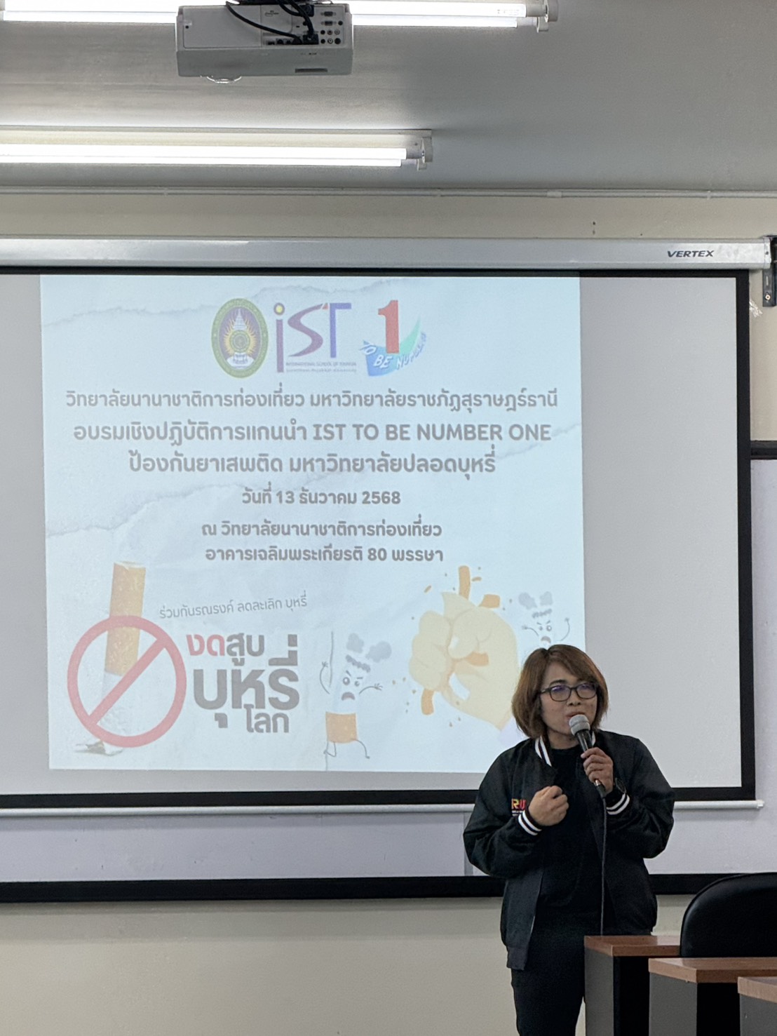 The International School of Tourism (IST), Surat Thani Rajabhat University, organized the “IST TO BE NUMBER ONE: Drug Prevention and Smoke-Free University” leadership workshop from December 13–14, 2025, between 09:00 and 16:00 hrs. at the IST 80th Anniversary Building. The project emphasized an intensive workshop process that encouraged student participation through hands-on practice, critical thinking, analysis, and creative collaboration.