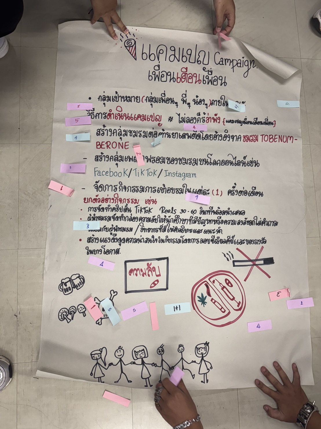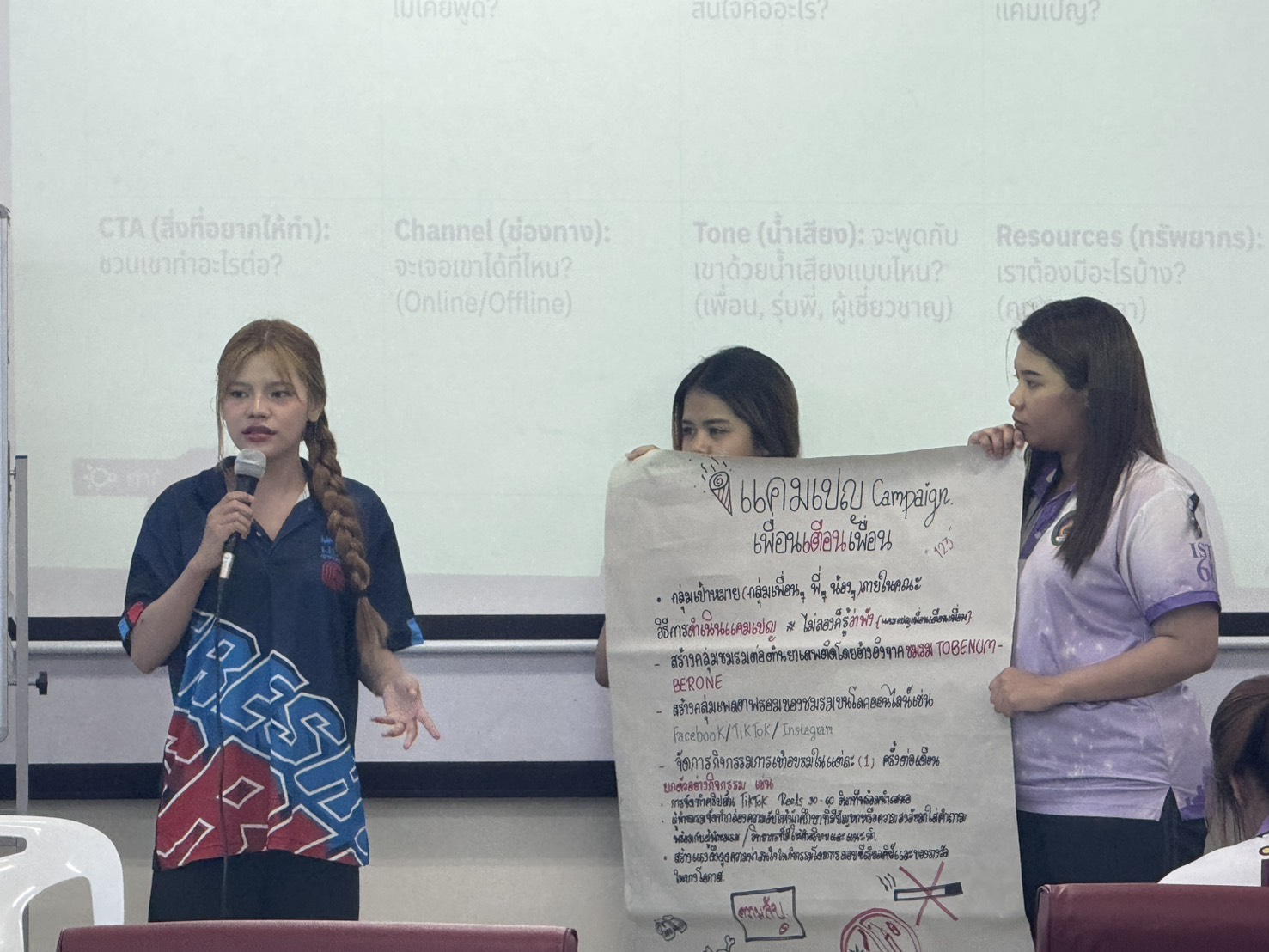 During the event, students engaged in a “Learning by Doing” approach. Activities included analyzing drug-related issues within the university context, simulating youth leadership roles, practicing creative communication for campaigning, and planning actionable “TO BE NUMBER ONE” and smoke-free university activities suitable for the faculty and university levels.