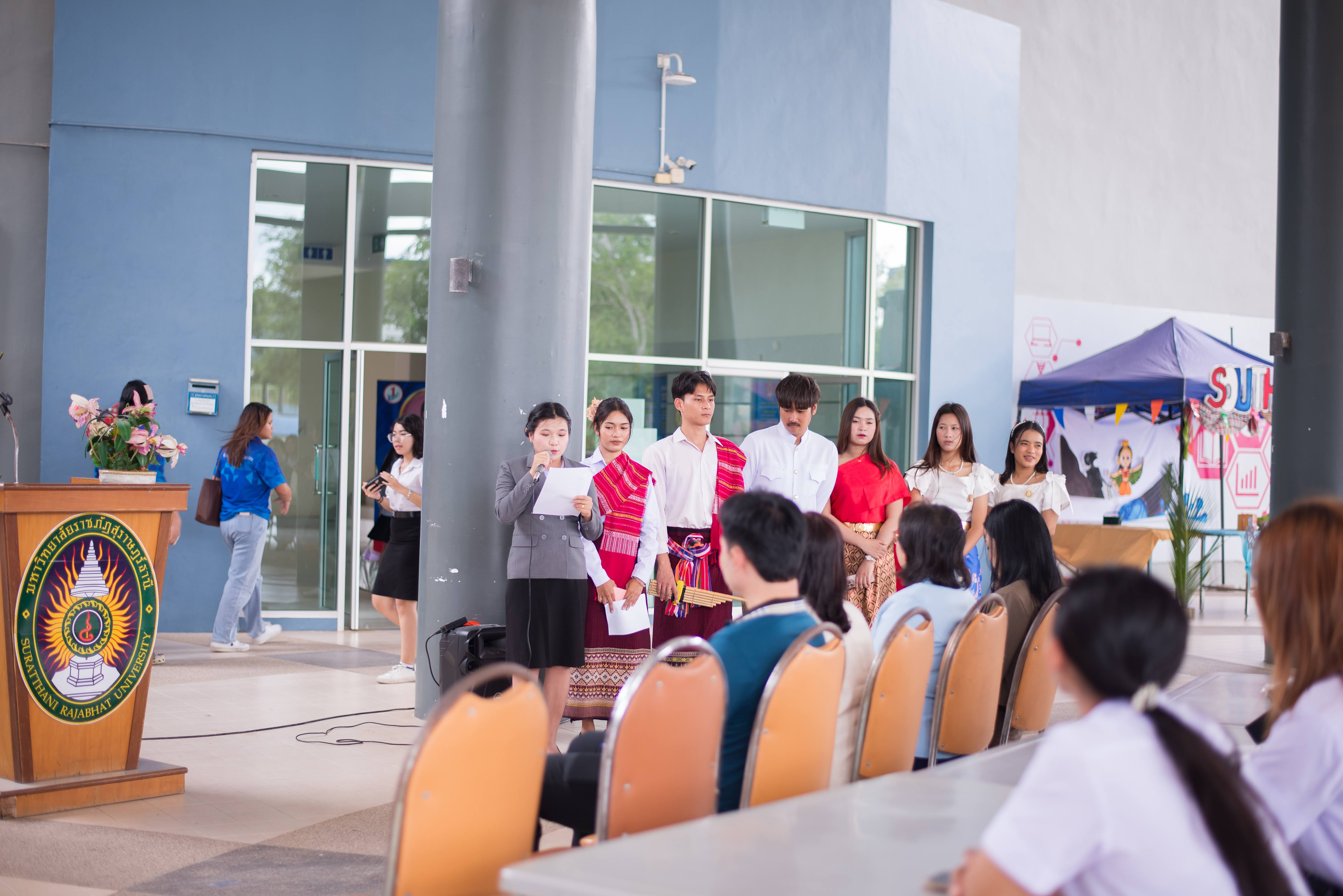 วิทยาลัยนานาชาติการท่องเที่ยว มหาวิทยาลัยราชภัฏสุราษฎร์ธานี จัดกิจกรรม “การจัดแสดงซุ้มนิทรรศการวัฒนธรรมไทยและภูมิปัญญาท้องถิ่น ๔ ภาค” เพื่อนำเสนอความงดงามและอัตลักษณ์ของวัฒนธรรมไทยในแต่ละภูมิภาค โดยมีนักศึกษาสาขาการจัดการการท่องเที่ยวและบริการเป็นผู้ดำเนินงาน ภายใต้รายวิชามรดกทางวัฒนธรรมและภูมิปัญญาท้องถิ่นเพื่อการท่องเที่ยว